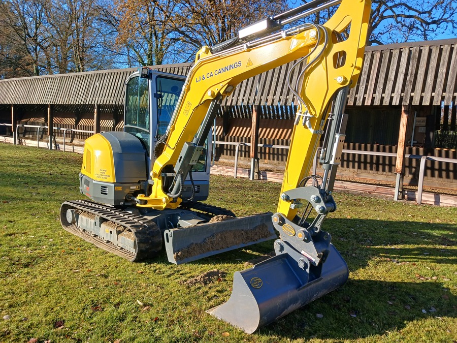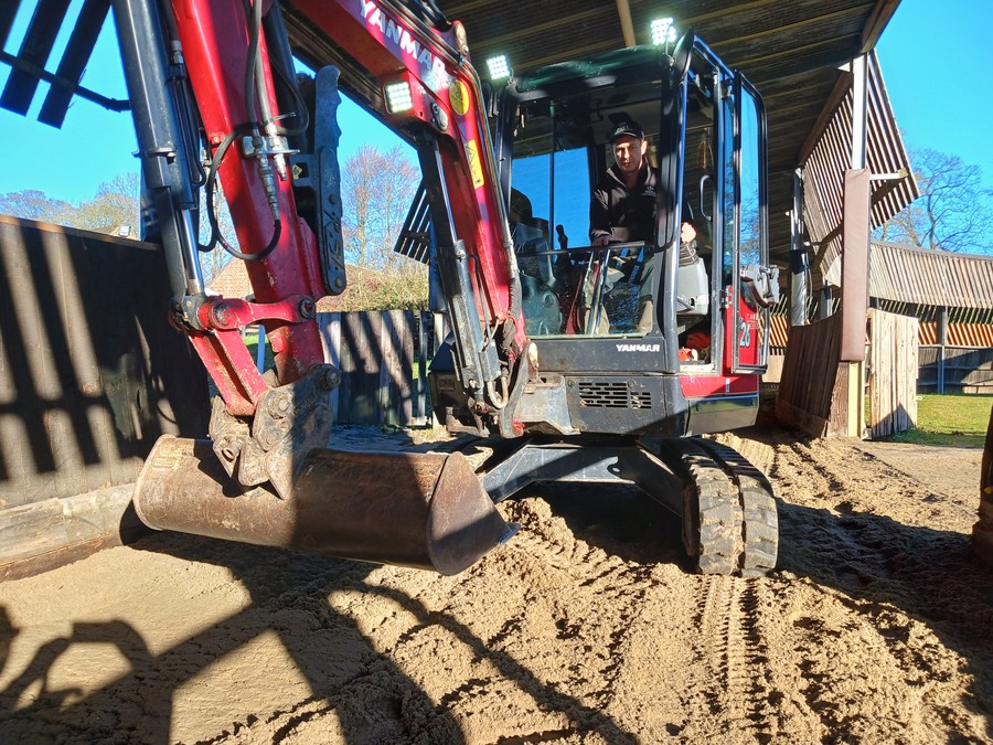 Noll Services was engaged to undertake a full restoration of a track that had reached this stage. The work needed to be completed within a single weekend to avoid disruption to training, which placed considerable emphasis on efficiency and planning. Using two excavators, the team dug out every part of the fibresand layer, working right back to the underlying base. This made it possible to loosen, turn, and fully remix the entire depth of material, breaking up years of compaction and restoring its original structure and resilience.